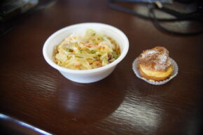 かき揚げもつけていただきました。飯館の「菓子工房Cocitto」さんのシュークリームを添えて。