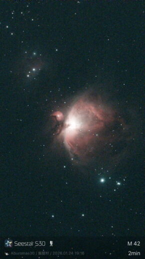 スマート望遠鏡で撮影した、M42オリオン大星雲。すげー
